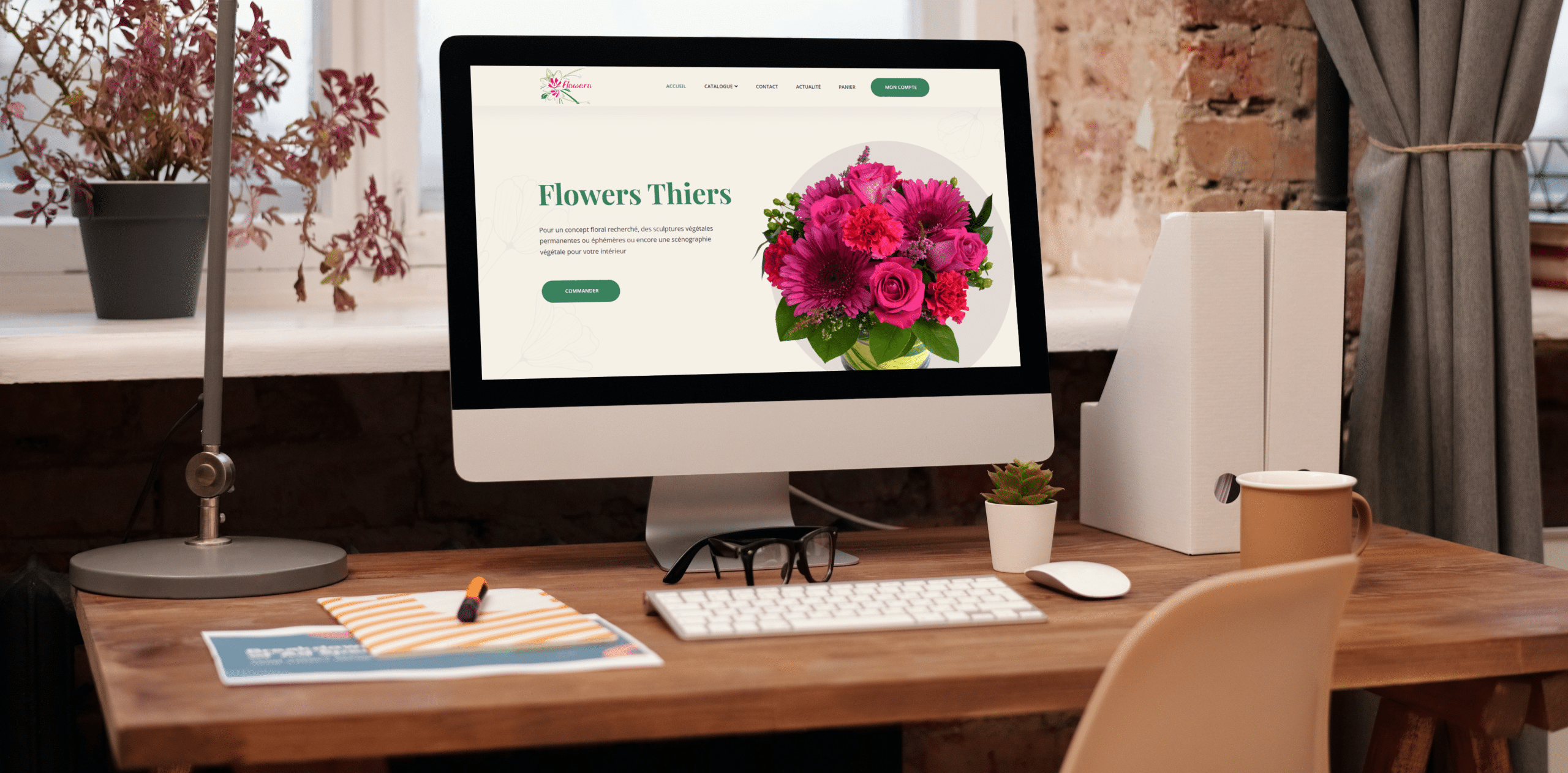 À Thiers, la boutique Flowers nous a confié la refonte complète de son site internet. Notre mission : créer une plateforme moderne alliant esthétique florale et fonctionnalités e-commerce.