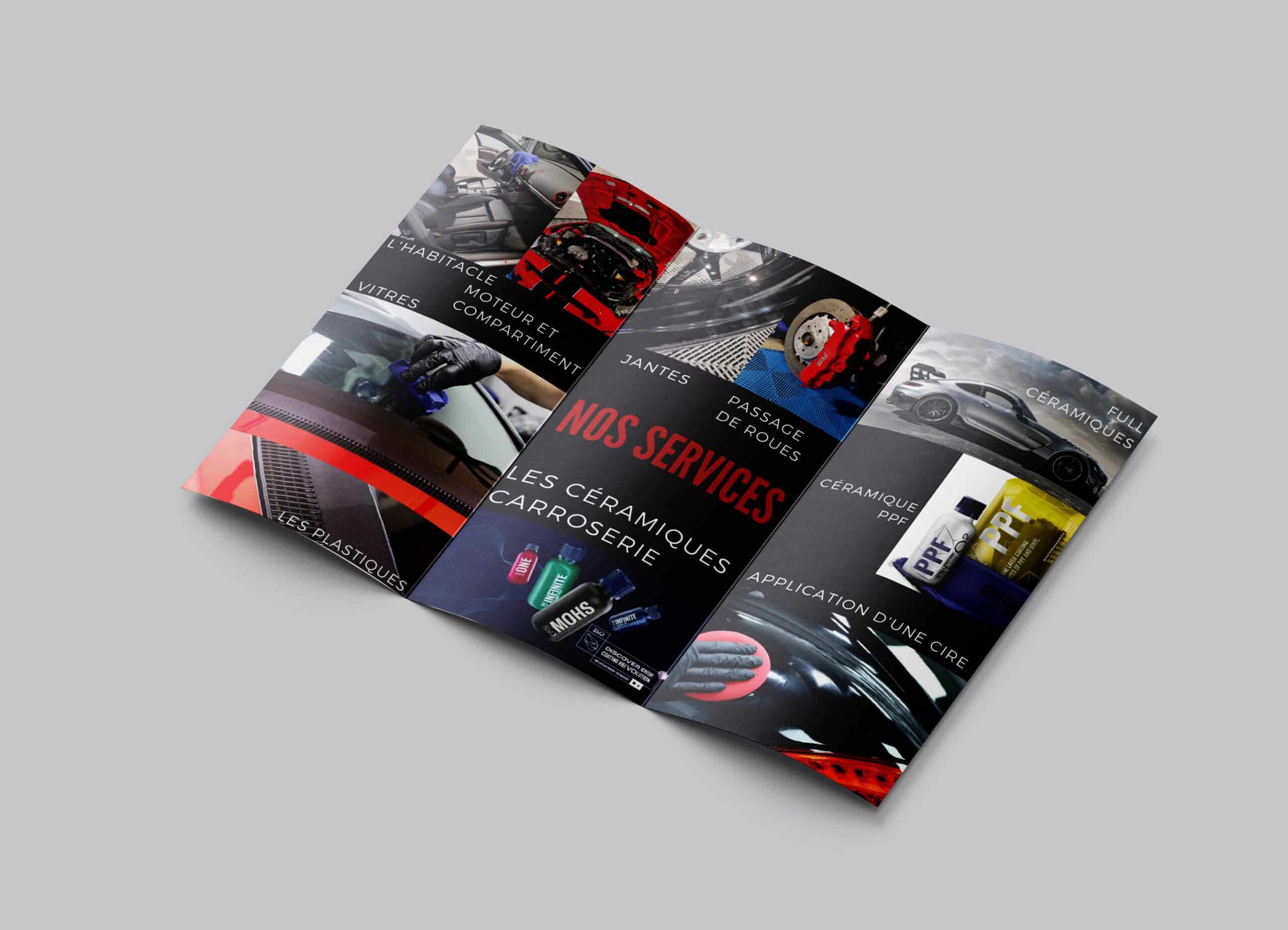 - Création de supports marketing : pour continuer sur une ligne de communication cohérente nous avons élaboré l’ensemble des supports de Demoniac Detailing à savoir, ses flyers, ses cartes de visite et ses brochures.